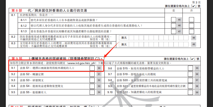 如公司在申索利得稅兩級制時存在其他有關連實體(同一控制下實體),一般需於報稅時一併填交補充表格 S1 ─「選擇以兩級制利得稅率課稅的人士」,並在表格內列明相關有關連實體的名稱(及其他要求資料),以符合兩級制就關連實體作出申報/限制的規定。